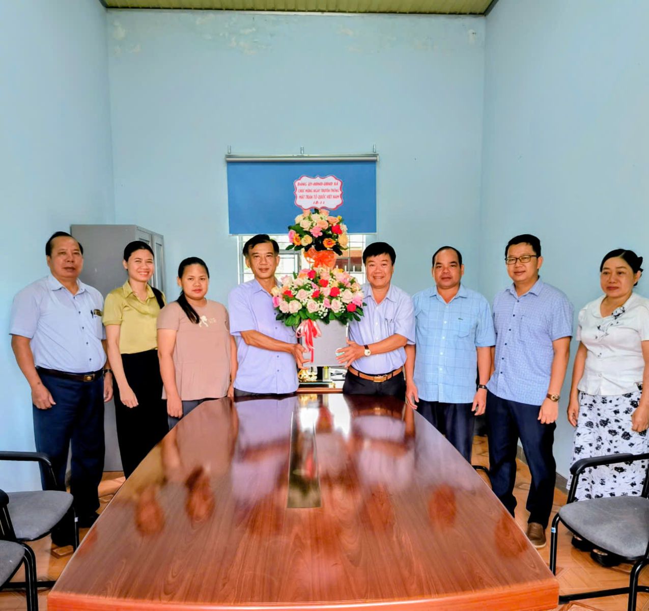 Sáng ngày 18/11, đại diện Đảng ủy, HĐND, UBND xã đã đến thăm, tặng hoa và chúc mừng Ủy ban Mặt trận Tổ quốc Việt Nam xã nhân dịp kỷ niệm 95 năm Ngày truyền thống vẻ vang của Mặt trận Tổ quốc Việt Nam.